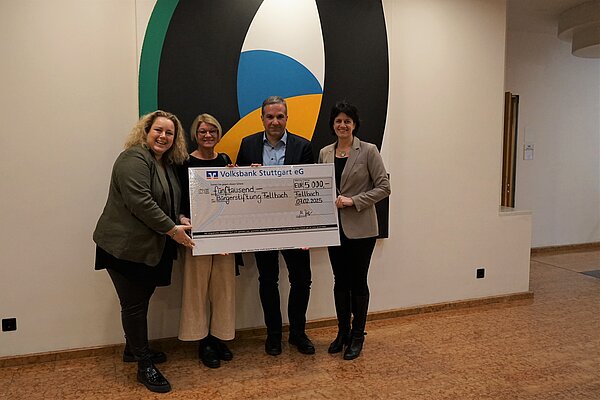 “Diese Spende stellt eine große Wertschätzung für die Bürgerstiftung dar. Das freut uns und unsere beteiligten Mitarbeitenden sehr!” so die Rathauschefin bei der Spendenübergabe im Fellbacher Rathaus.